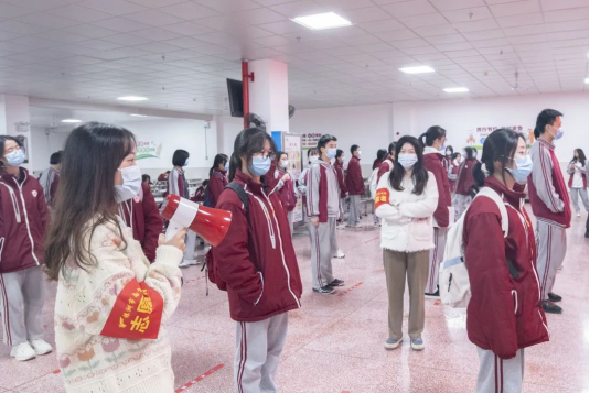 “请同学们有序排队,保持一米间距。”每天早中晚的就餐时间,株洲南方中学的食堂总能听到来自人文学院19级历史系实习队吴巧亲切熟悉的声音。“请出示健康码。”每天一次留校师生全员核酸检测采样时,总能听到实习队朱琪琪的温馨提醒。朱琪琪负责健康码扫码和信息录入工作,每天,扫码、录入信息这样的动作朱琪琪需要重复400多次……这支由2名带队老师和20名实习生组成的湖南科技大学人文学院历史系实习队,在南方中学实习期间碰上株洲突发疫情,他们就地成为志愿者,积极为南方中学疫情防控贡献力量。