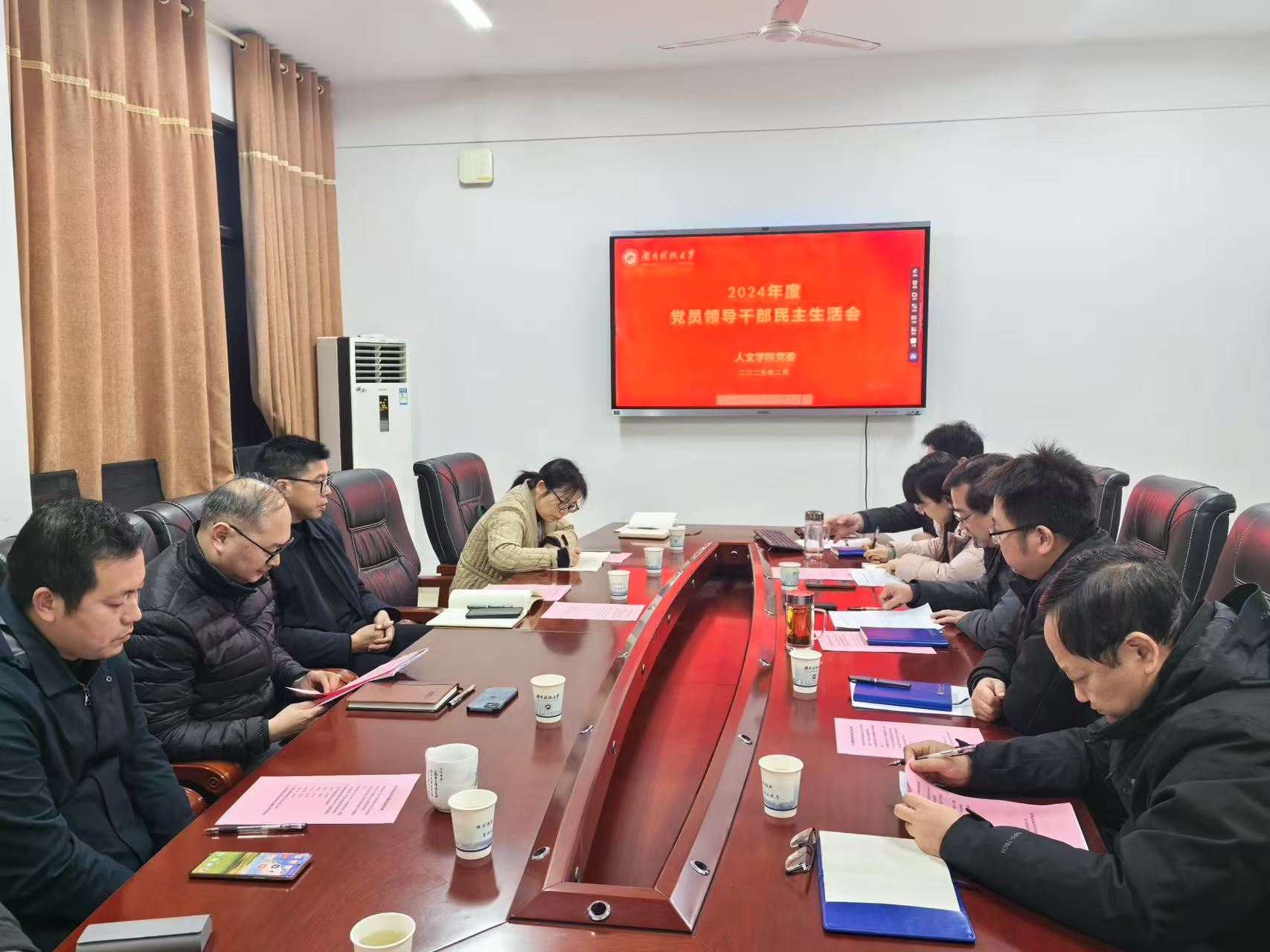 2月26日晚,人文学院召开2024年度党员领导干部民主生活会。校党委委员、副校长周智华、党委宣传部常务副部长李洪华到会指导,院党委全体成员、昭潭书院张新康、聂志军、学院组织员和党政办主任参加会议,会议由院党委书记曾志东主持。