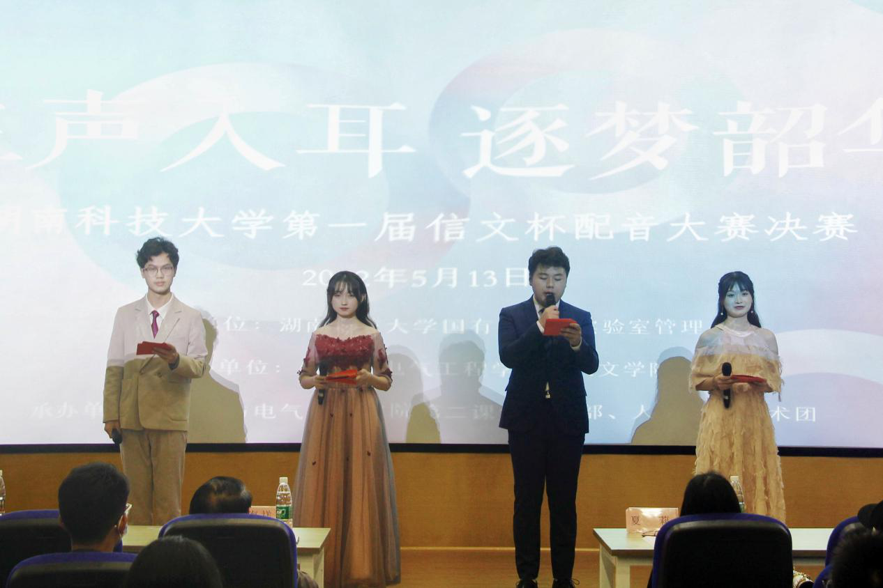 5月13日晚,“生声入耳,逐梦韶华”第一届“信文杯”配音大赛决赛于立志楼5-2隆重举行。比赛由国有资产与实验室管理处主办,人文学院艺术团、信息与电气工程学院第二课堂服务部承办。国有资产与实验室管理处副处长郑海祥、学工处副处长夏莉、信息学院党委副书记江献书、校团委副书记陈正红与人文学院学工办辅导员成伟明担任评委。比赛由龙子尧、李舒婷、唐一睿、王少露主持。
