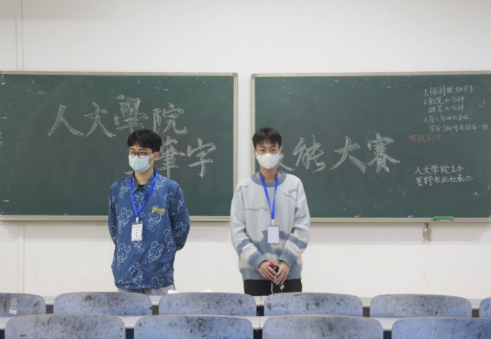 本次比赛共有初赛和决赛两个赛程。我院21级、20级全体学生及部分19级学生以班级为单位参加初赛,共收集到了2000余份作品。根据初赛的评比结果,共有98位同学入围决赛。决赛开始前,星野书画社已做足准备工作:张贴横幅标语、书写活动名称、分发比赛用品。